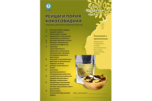 Проспект о серии "Древесные грибы": "Чага и пория кокосовидная". "Рейши и пория кокосовидная"