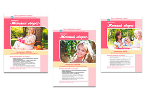 Серия листовок для укрепления женского здоровья и профилактики проблем женской половой сферы. В трех вариантах: